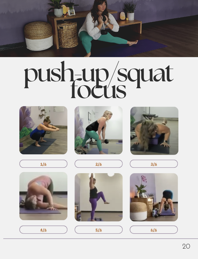 You'll recieve a clickable PDF with your full menu of classes that you can keep forever to have a more balanced movement diet.